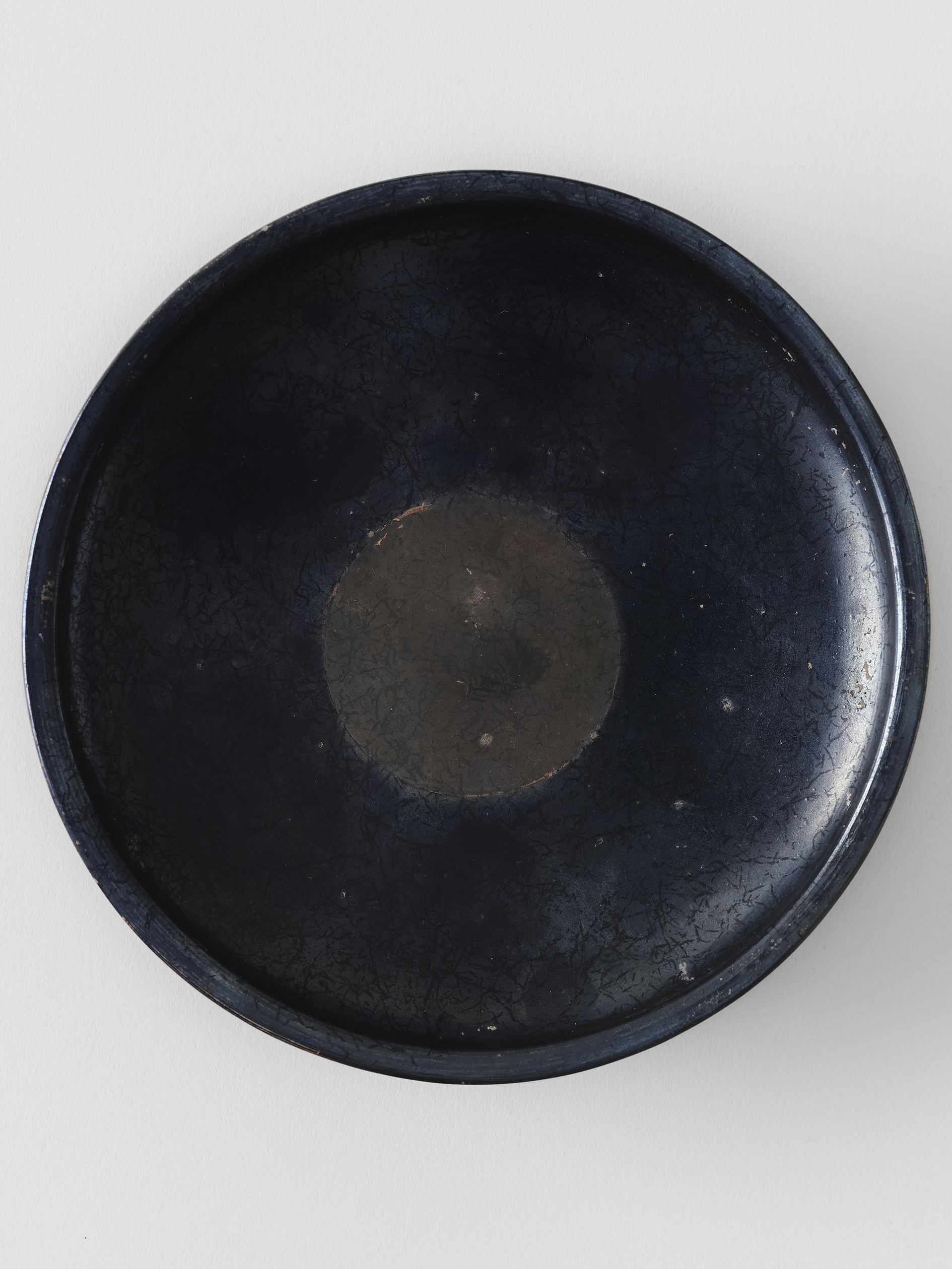 光沢ある黒色の鉛釉で覆われた古代ギリシャの陶器。南イタリー、アプリアにて作られたものと思います。見込みには重ね焼の際に焼成温度の違いから色が変化した箇所が見られます。イタリアを中心に黒海沿岸部、ブルガリア、ドイツ、南フランス、スペインから出土・発見される事から大きな流通があったようです。