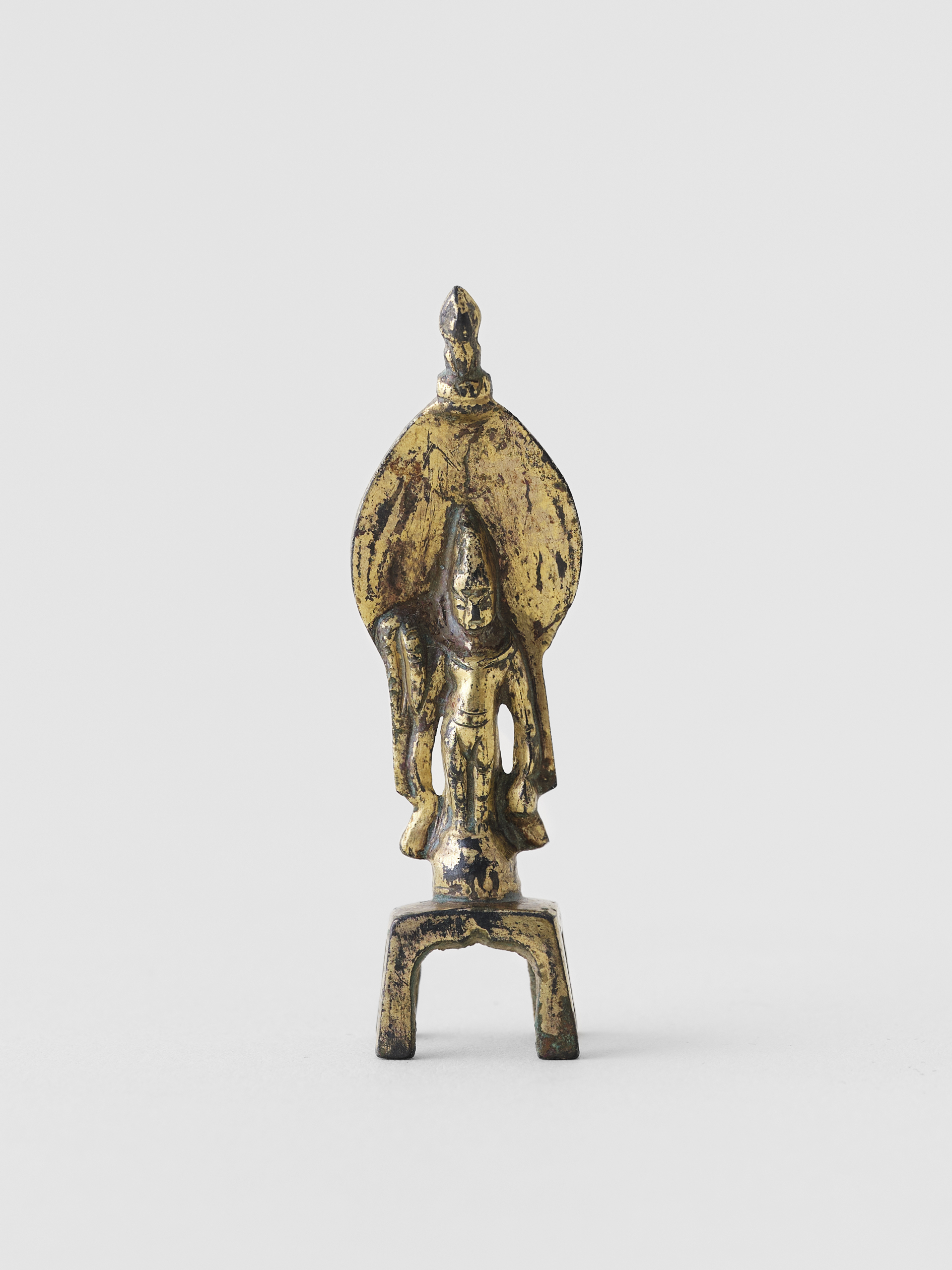 鍍金の残る小さな菩薩像。僅かな腰の捻り、光背から緩やかに前傾がかります。