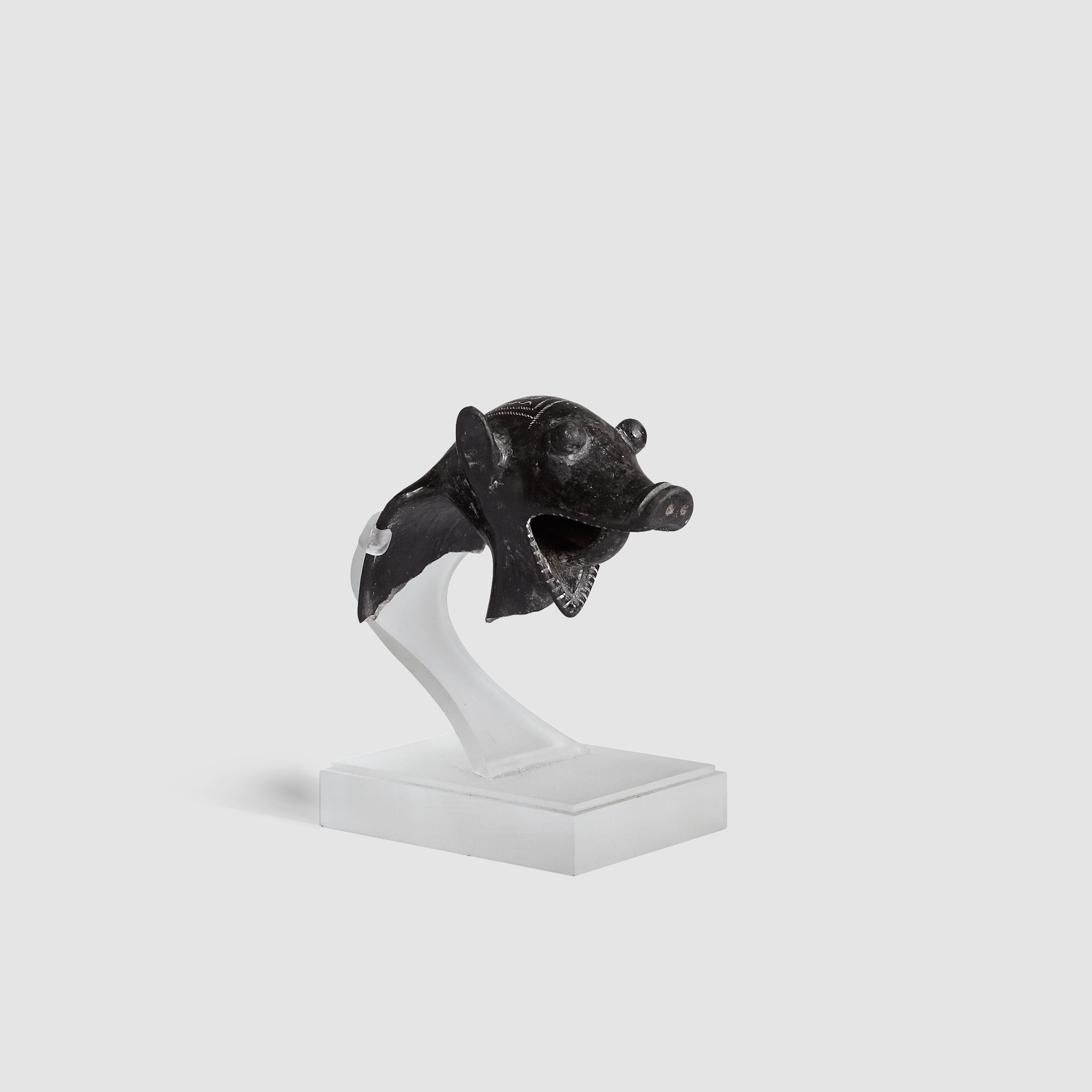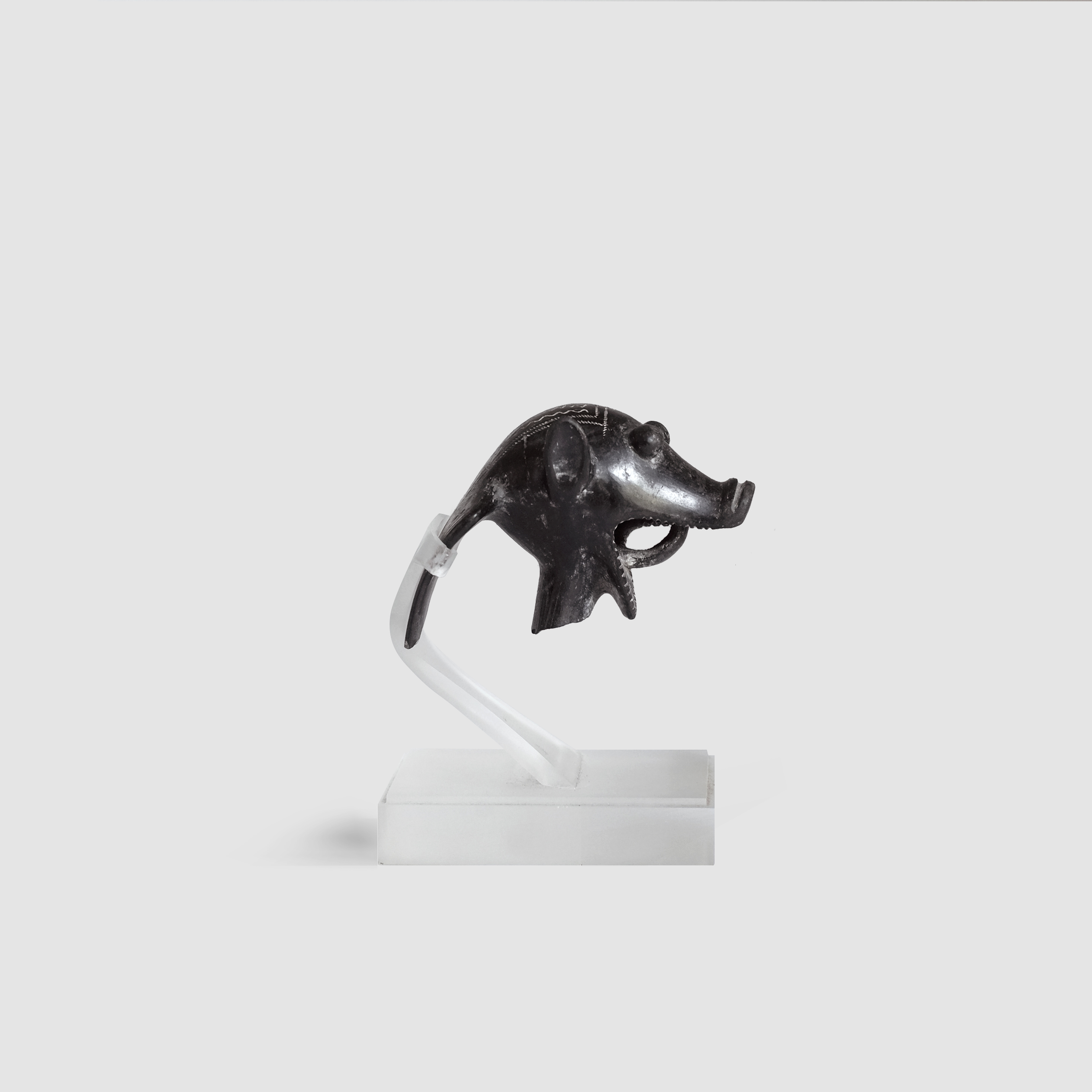 猪を模した装飾部分。飛び出た目と前へ突き出た鼻。大きく開いた口には歯の表現もある精巧な作りで、口内には把手があります。背中側には波状の線刻や点刻が施され、丁寧に造られた様子が窺われます。